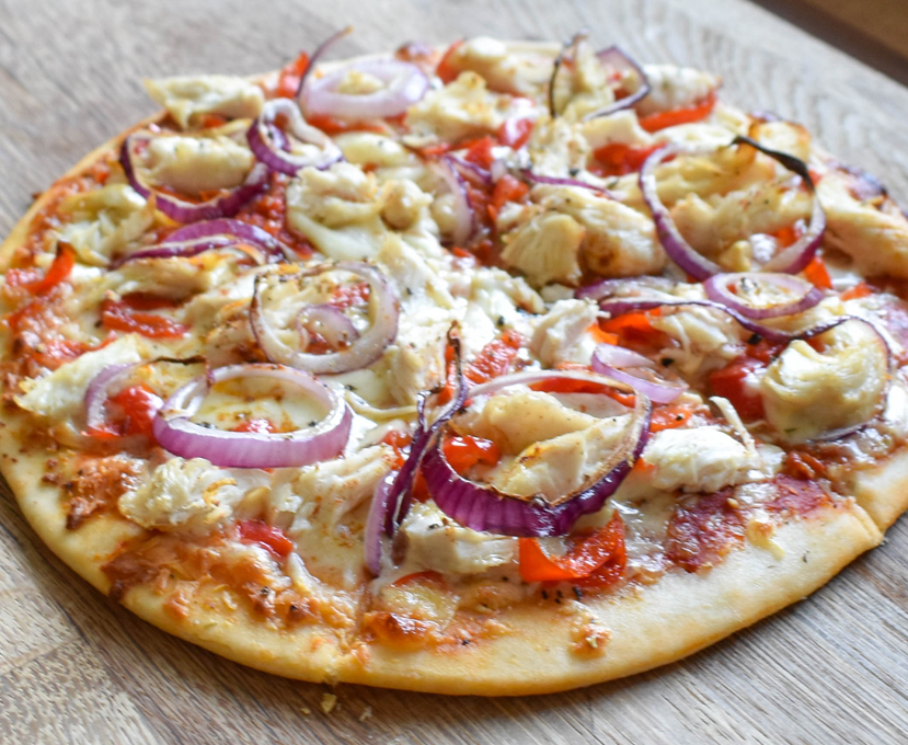 You've been asking for this recipe by the rocket load – sweet Peppadew peppers, spiced Cajun chicken, and sweet red onion make this pizza an astronomical choice. We’re showing you how to make a gluten-free one, but if that’s not your bag just switch it for a classic PizzaExpress Margherita base.