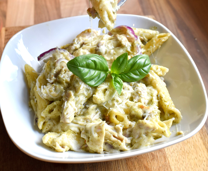We were asked for this recipe a total of 42 million times (just kidding, but it was a lot) – so here it is in all its creamy pesto glory. The delicious, one and only, Pollo Pesto. You’re welcome.